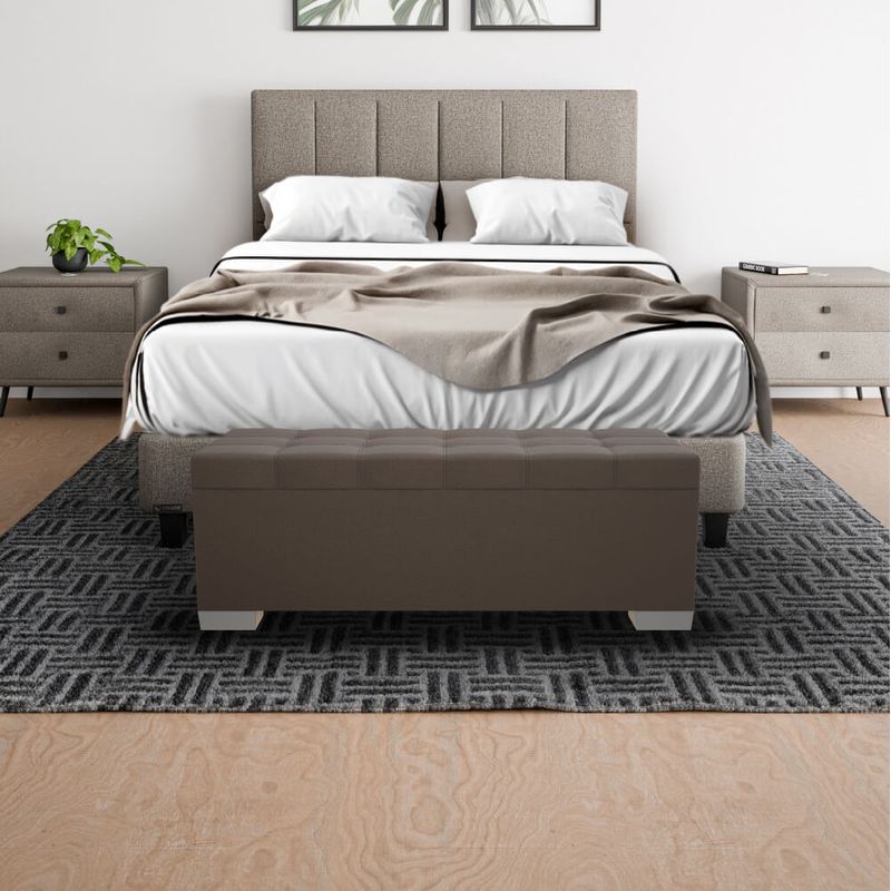 El diseño se integra con camas y cabeceros de distintas líneas —desde propuestas contemporáneas hasta estilos clásicos— y su tela repelente de líquidos facilita el mantenimiento cotidiano, ayudando a conservar la pieza en excelentes condiciones por más tiempo. Se ofrece en varios colores, por lo que resulta sencillo coordinarlo con la paleta de tu dormitorio y con otros textiles Chaide. Con medidas de 145 cm x 50 cm x 40 cm, brinda un punto de apoyo cómodo para calzarse o preparar el día, al tiempo que aporta presencia decorativa y equilibrio visual. Si buscas una solución versátil que combine asiento, apoyo y almacenamiento, la Mega Bench 145 cm eleva la funcionalidad de tu espacio de descanso sin sacrificar la estética.